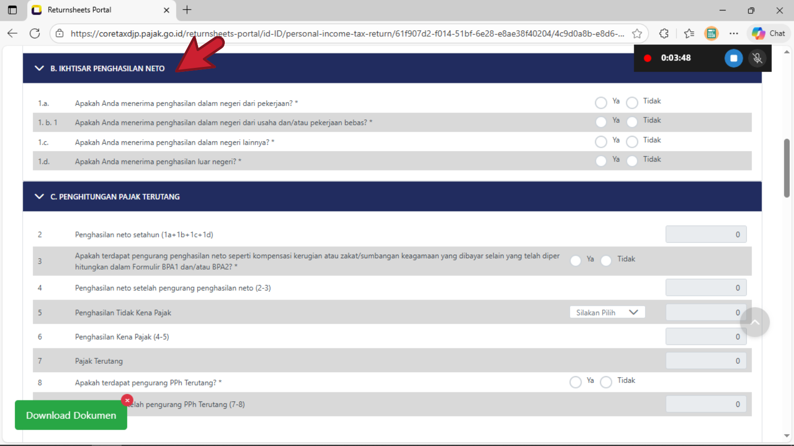 Sebelum memilih jawaban pada nomor 1.c. , perhatikan pada nomor 1.b.5. Penghasilan neto dari usaha dan/atau pekerjaan bebas, dapat dilewatkan saja karena merupakan baris atau kolom yang menerangkan pindahan otomatis jumlah besaran atau nominal penghasilan neto setelah mengisi lampiran - 3B.