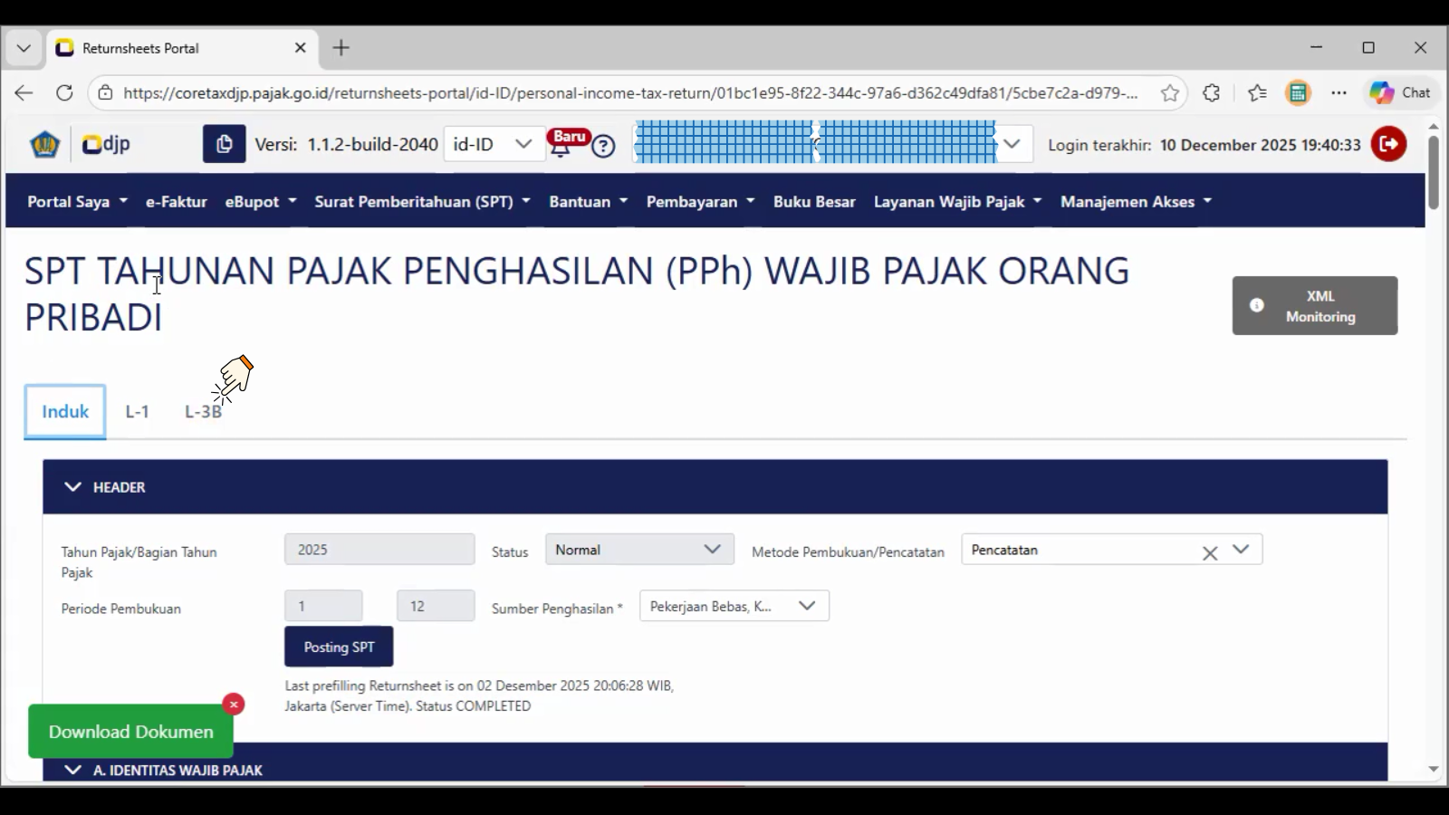 Cek pada bagian header atau atas halaman induk spt tahunan yang telah tampil atau aktif lampiran 3b seperti pada gambar di bawah ini.