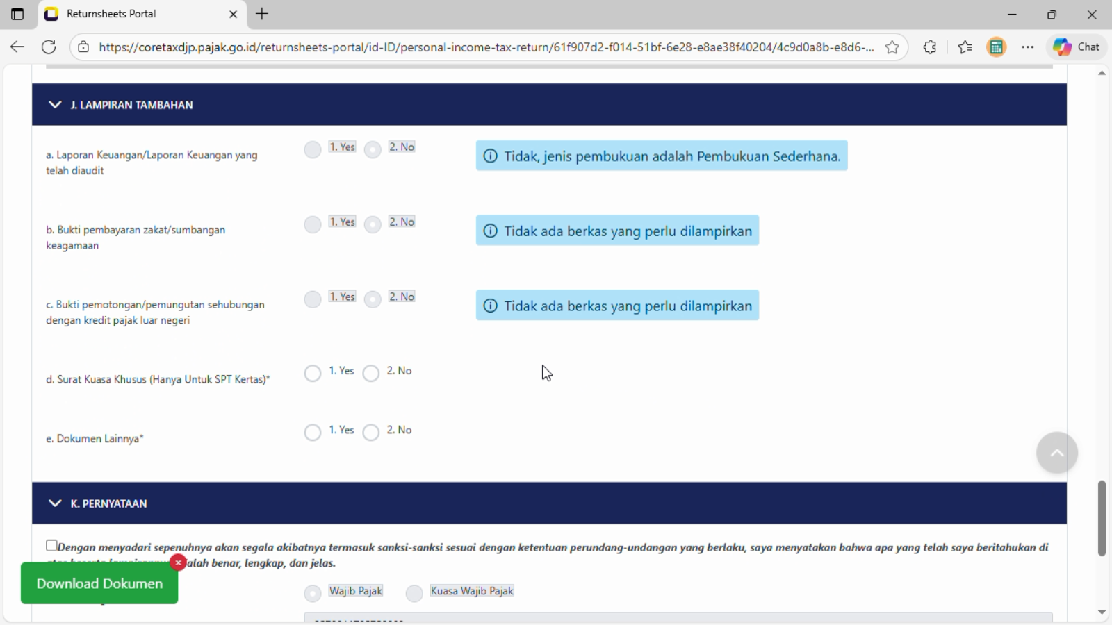 Sistem pada konsep spt tahunan PPh telah posting dengan bulatan jawaban No dengan notifikasi: Tidak ada berkas yang perlu dilampirkan.