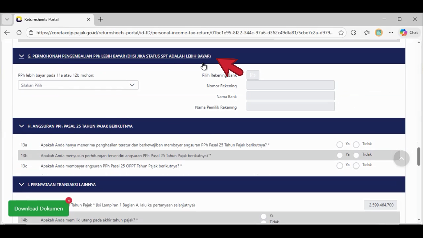 maka pada huruf G. Permohonan Pengembalian PPh Lebih Bayar dapat di lakukan pemberitahuannya.