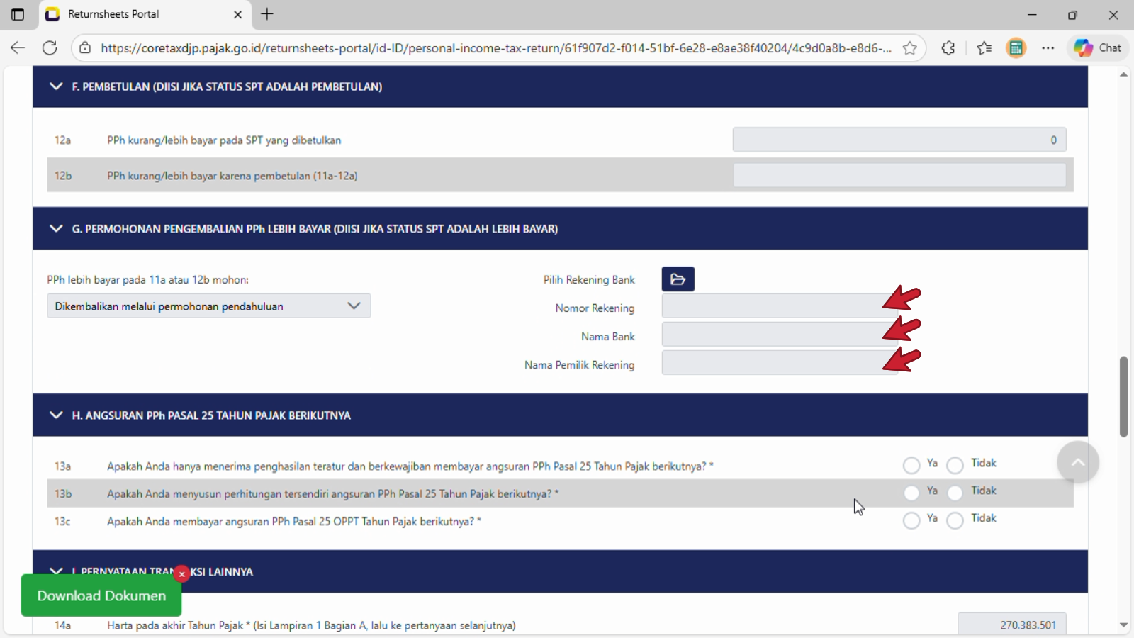 Pada tangkapan layar di atas, kolom PPh lebih bayar pada 11a atau 12 b mohon: