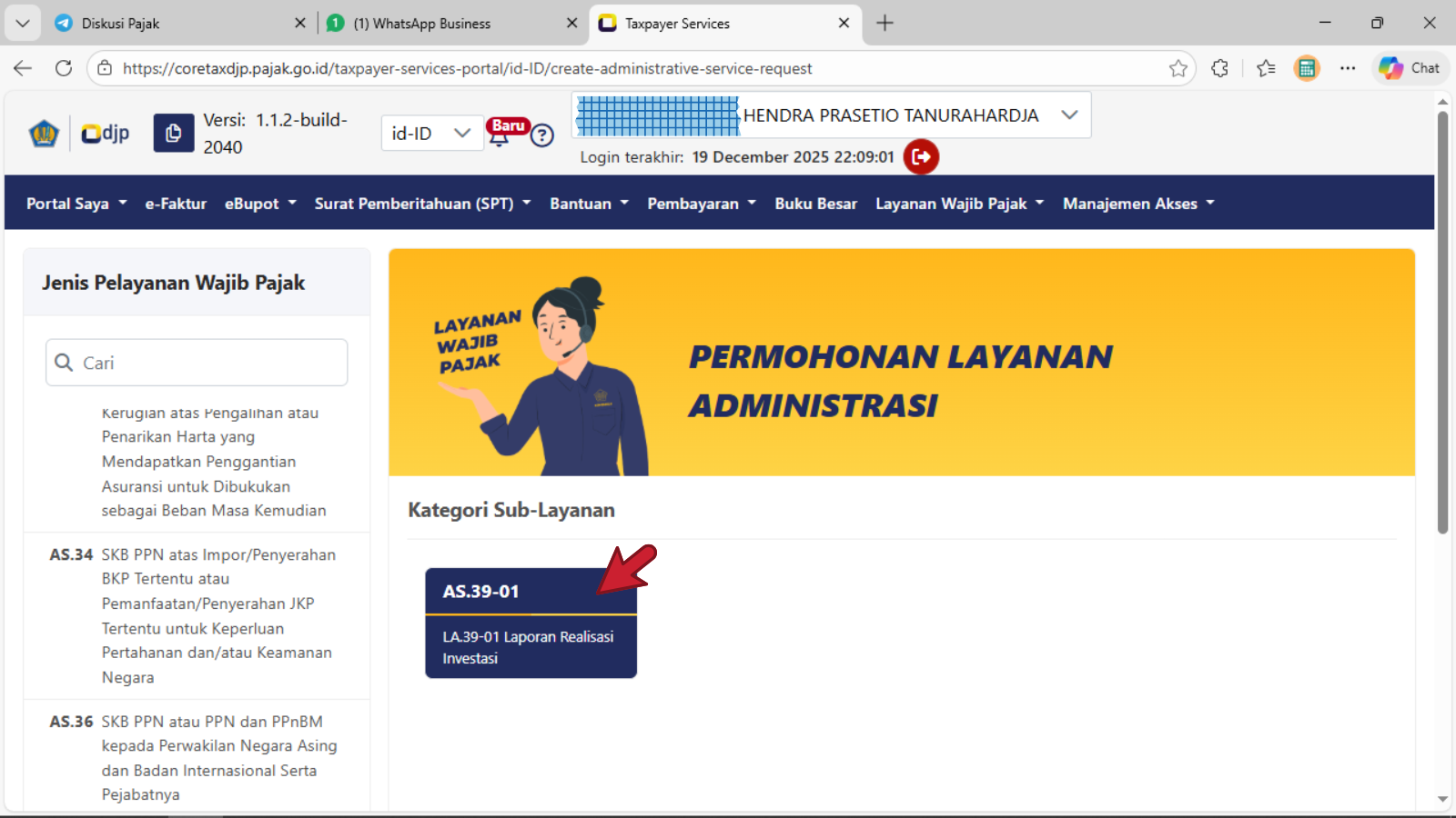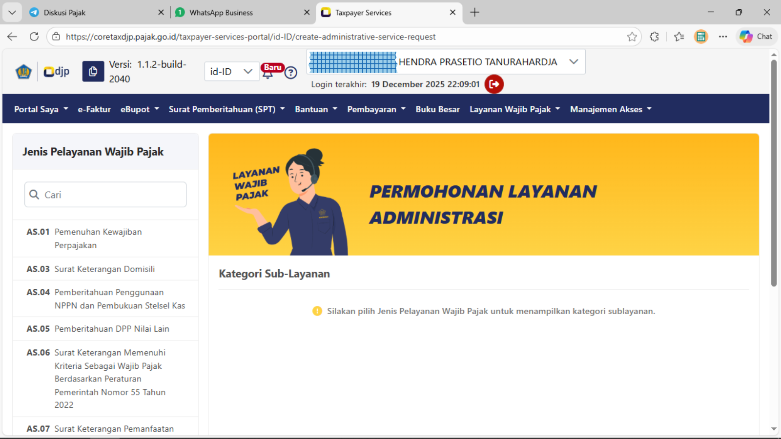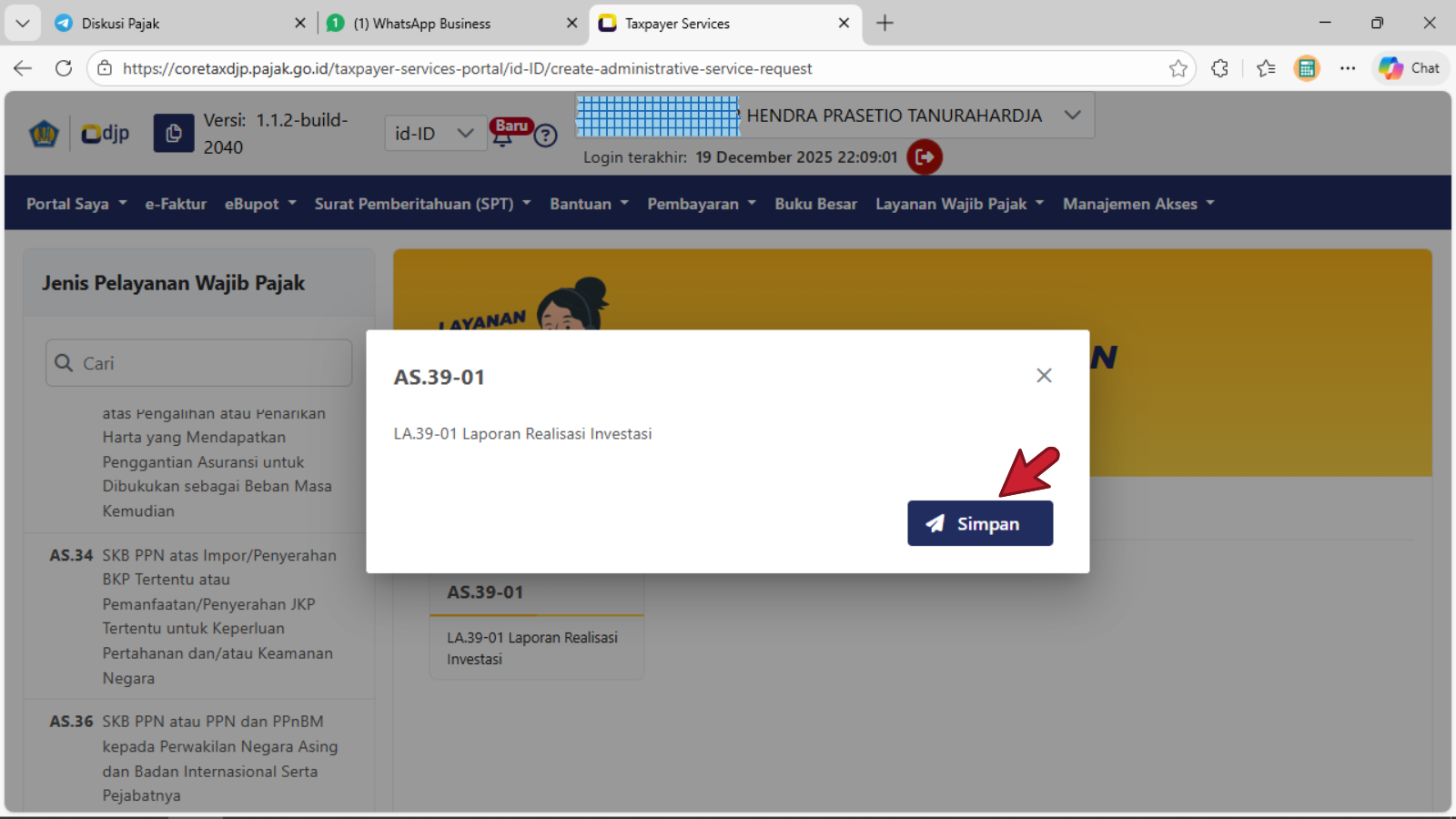 - Pilih modul Layanan Wajib Pajak