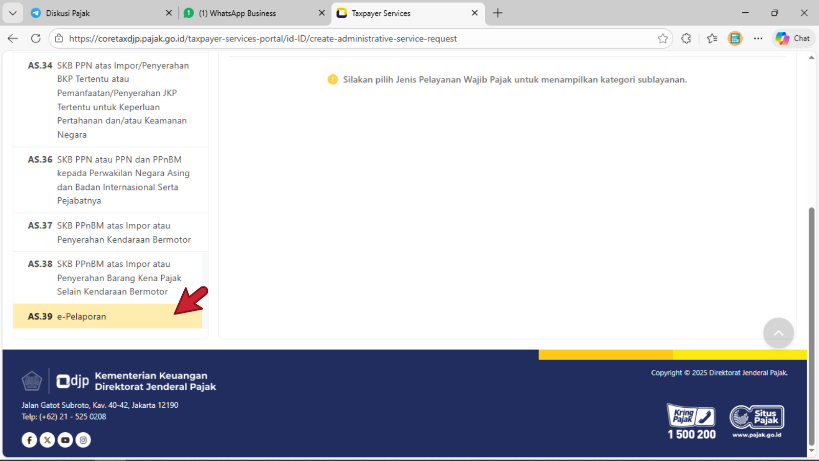 - Sisi kanan : Jenis Pelayanan Wajib Pajak (PERHATIKAN)