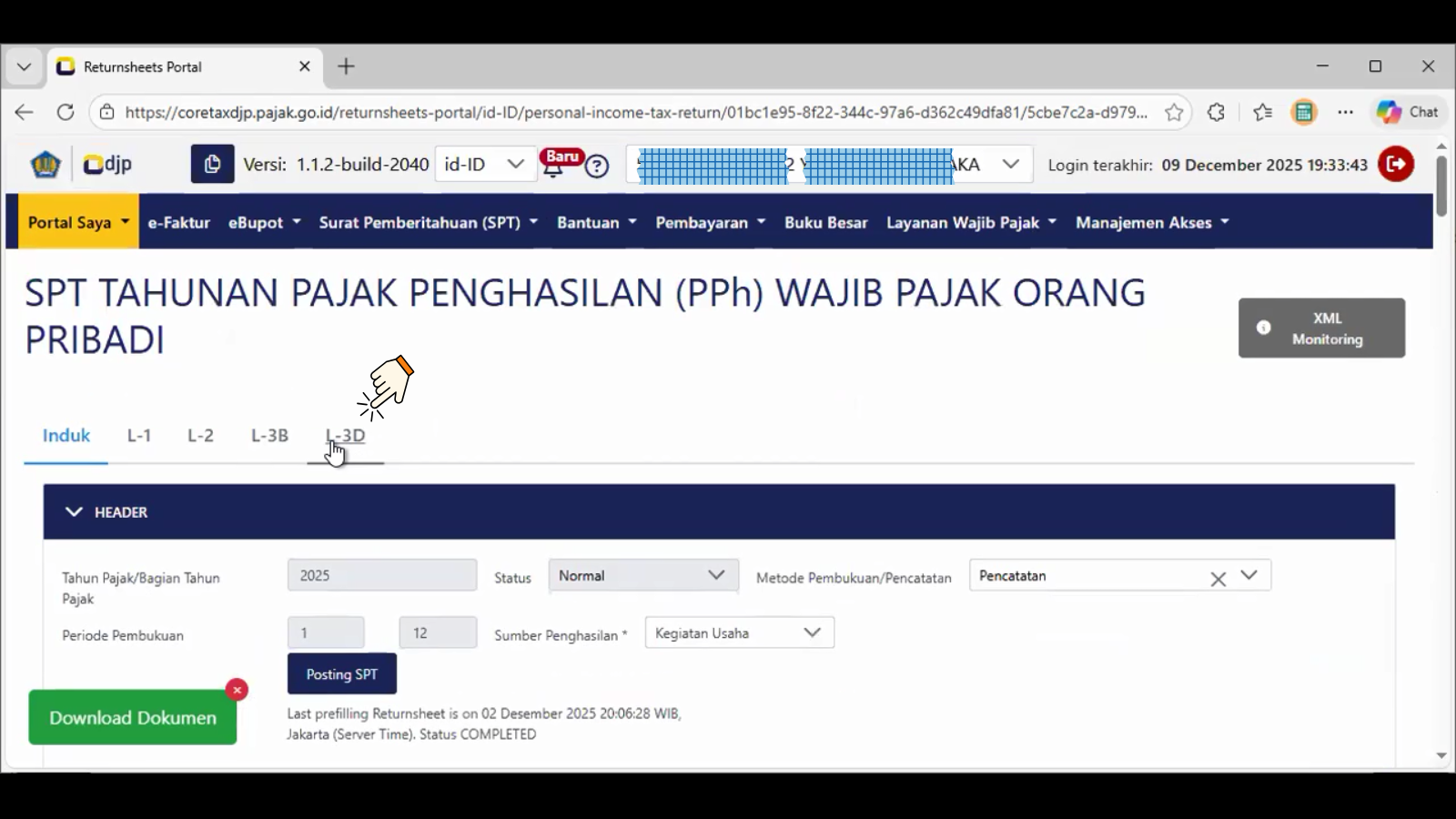 Pada contoh tangkapan layar di atas, sisi kanan nomor14a. tertera nominal jumlah harta pada akhir tahun pajak, akibat menekan tombol Posting pada bagan Header spt tahunan PPh wajib pajak orang pribadi, secara otomatis sistem akan integrasi data dengan pelaporan dan yang telah diinput/dilaporkan wajib pajak orang pribadi pada spt tahunan PPh wajib pajak orang pribadi tahun pajak 2024.
