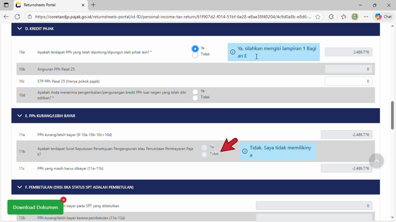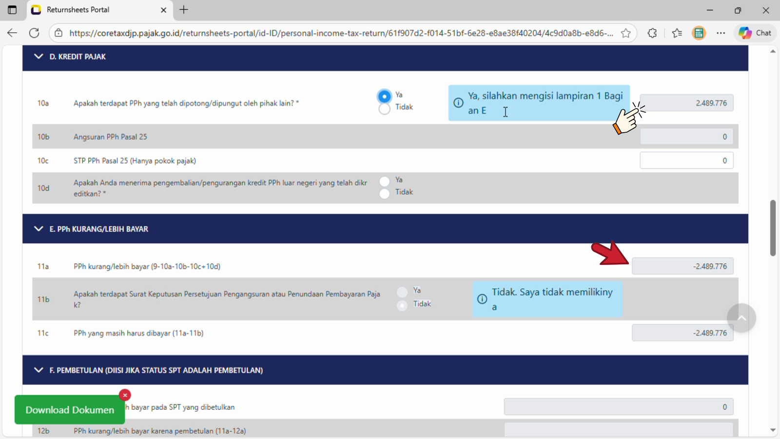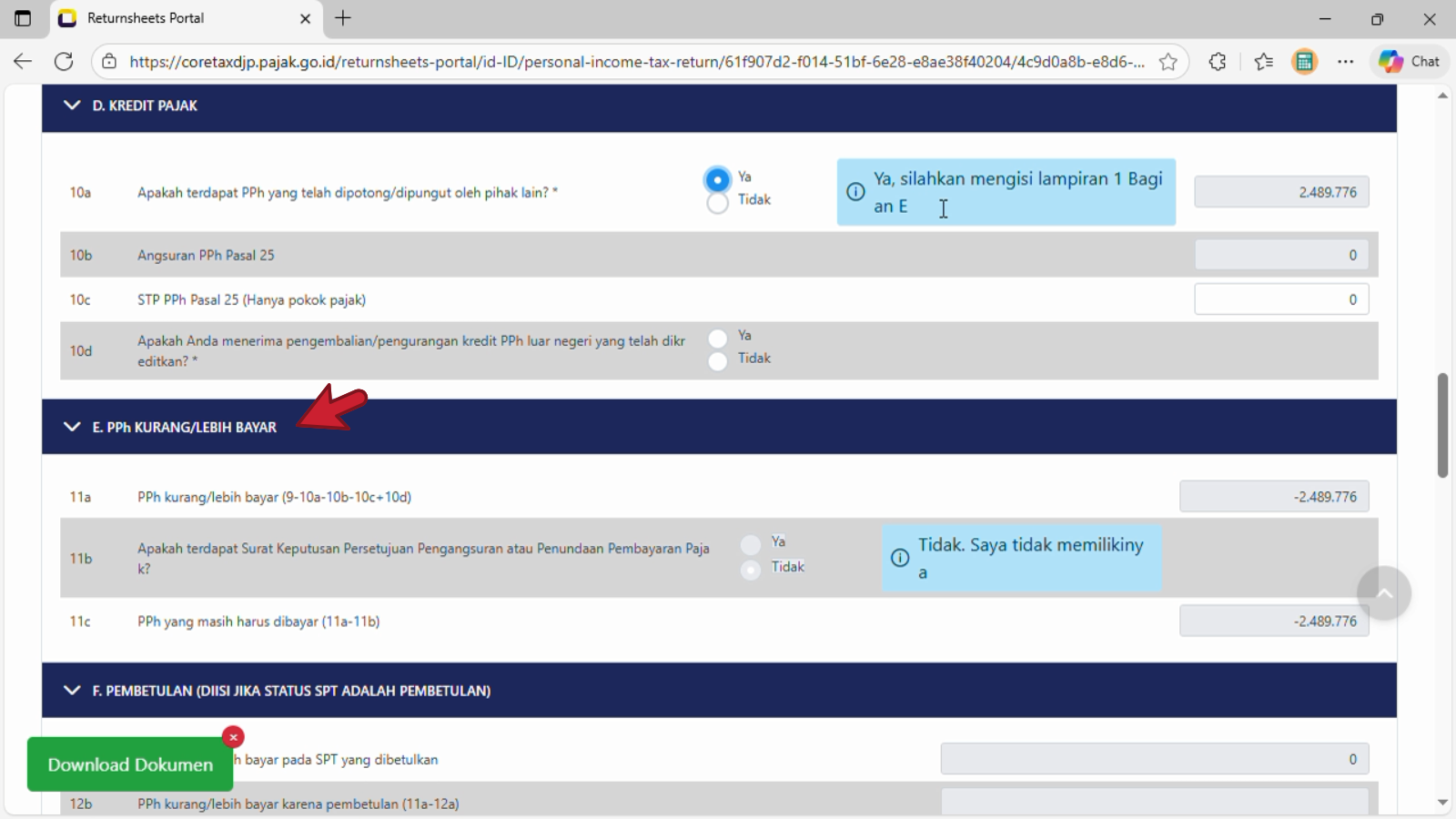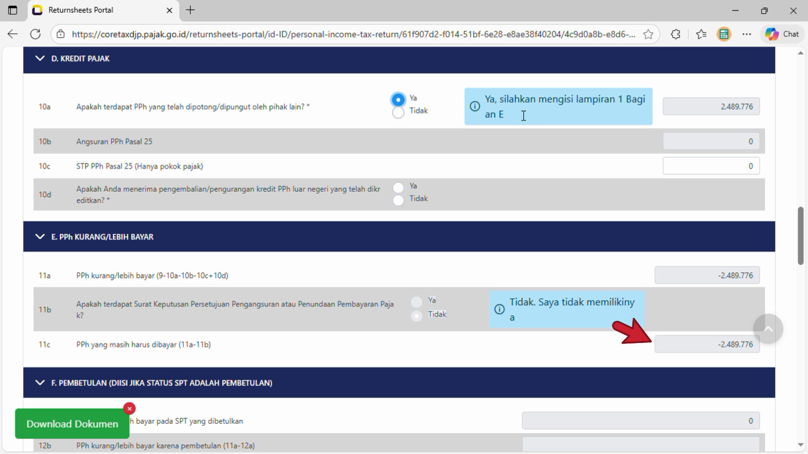11a. PPh kurang/lebih bayar (9-10a-10b-10c+10d)