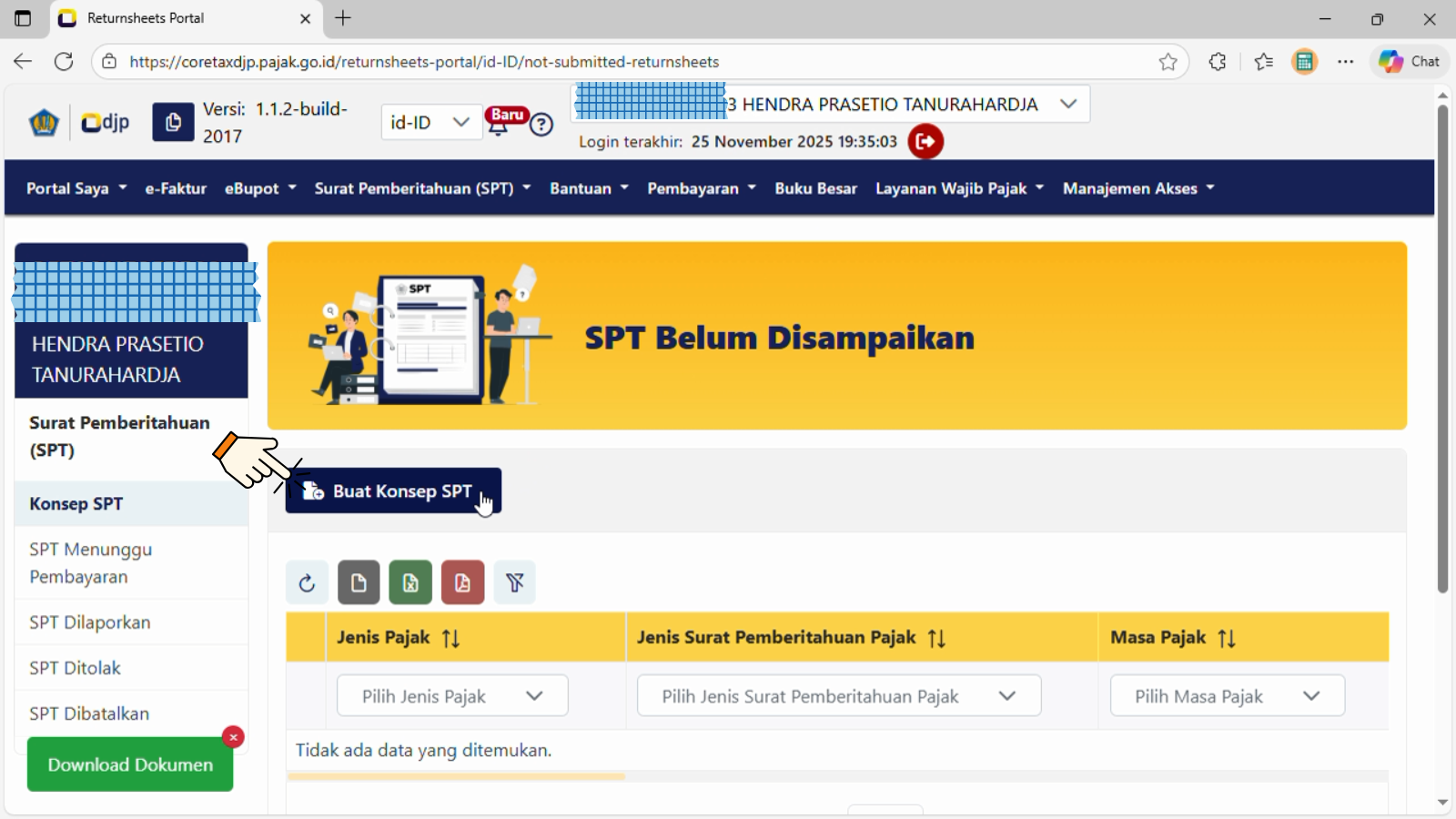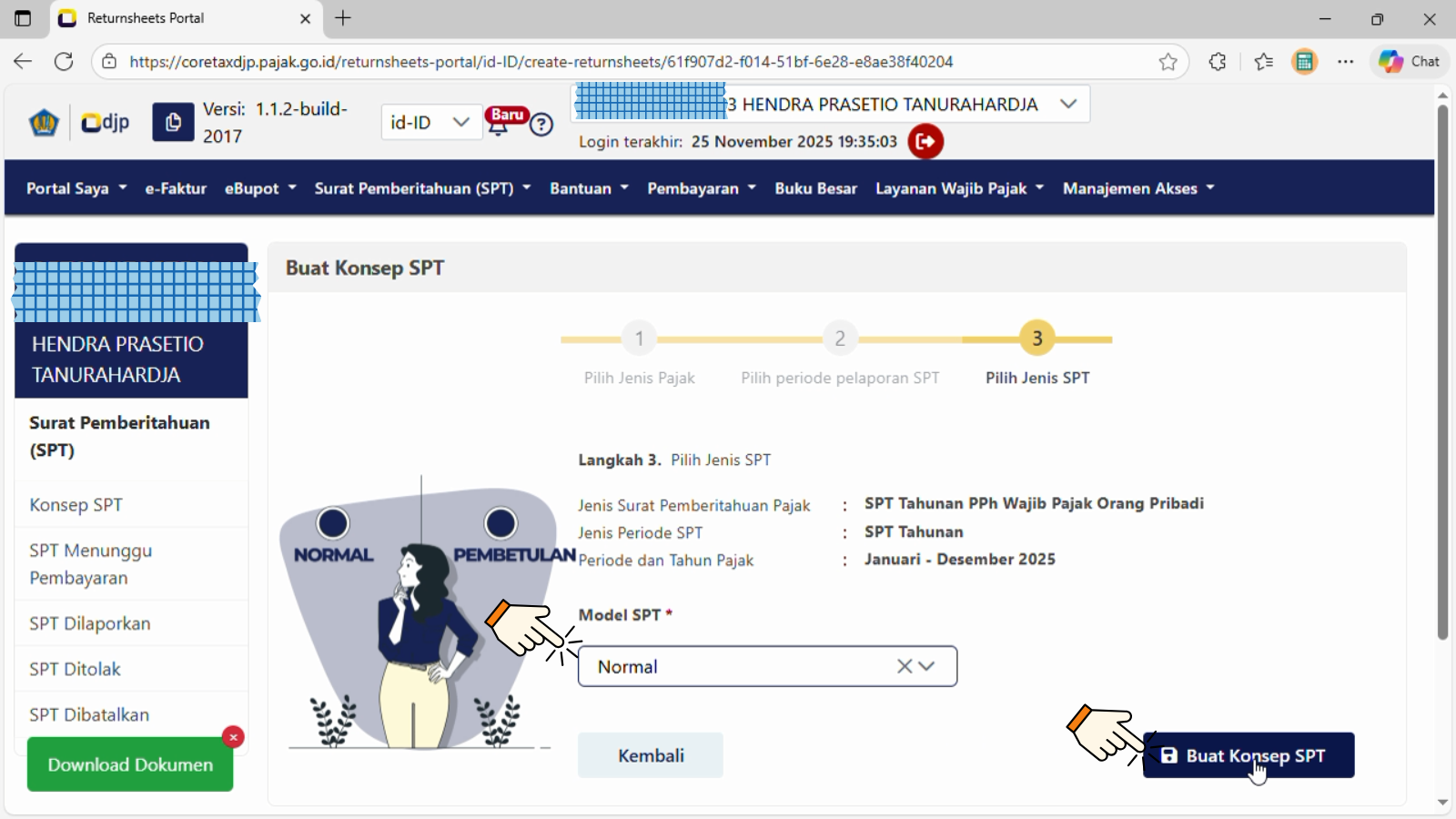 Langkah 9: - Setelah memilih status konsep SPT adalah Normal - Klik tombol Buat Konsep SPT