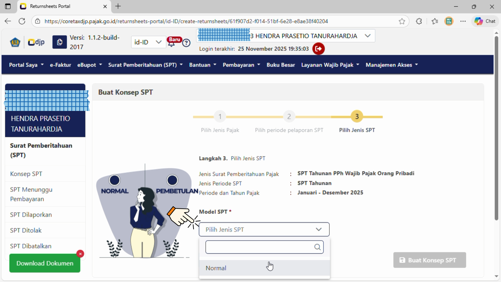 Otomatisasi setelah pemilhan langkah ketiga buat konsep SPT PPh Orang Pribadi