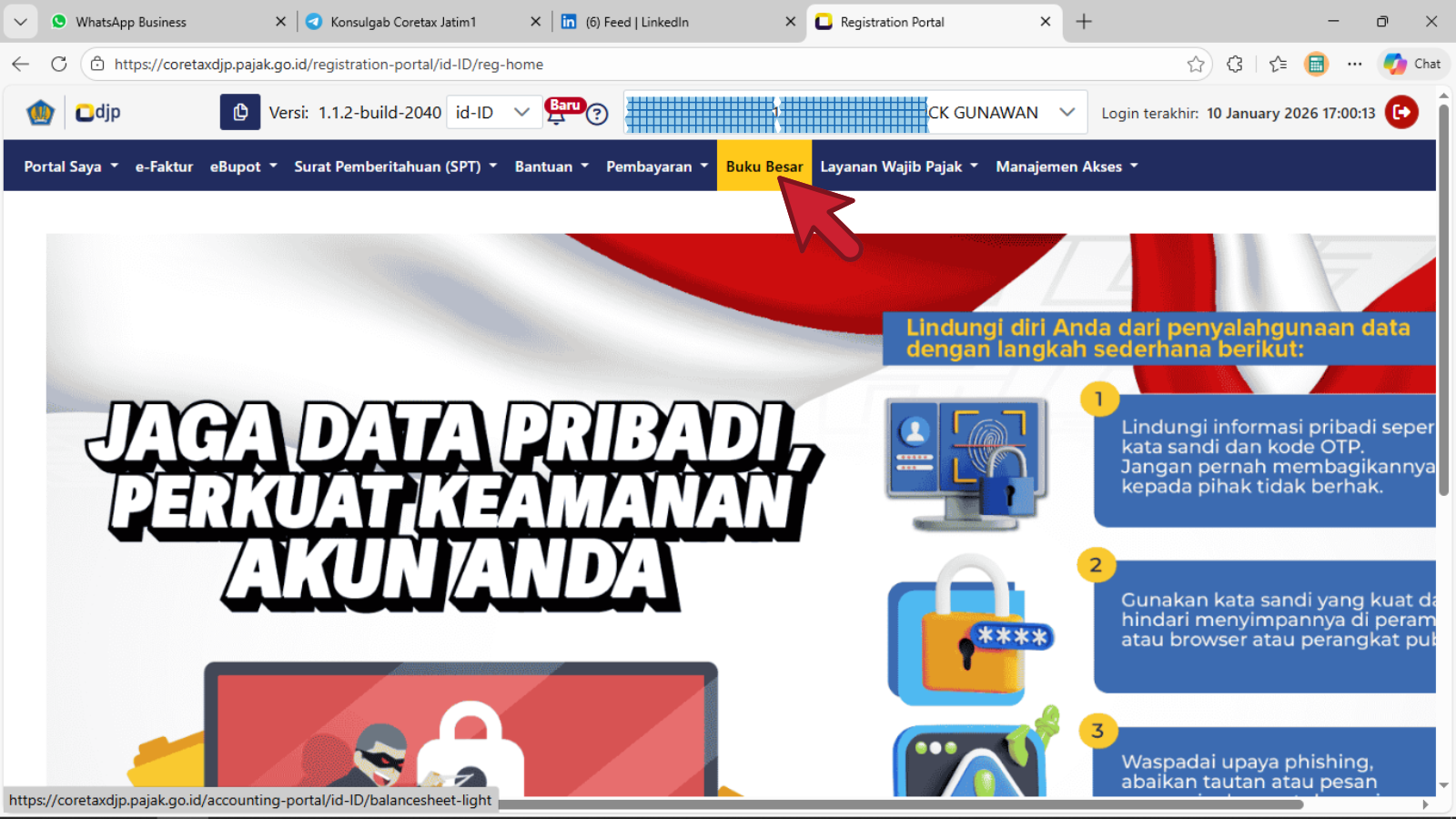 - Masuk ke portal core tax, pilih Modul Buku Besar;