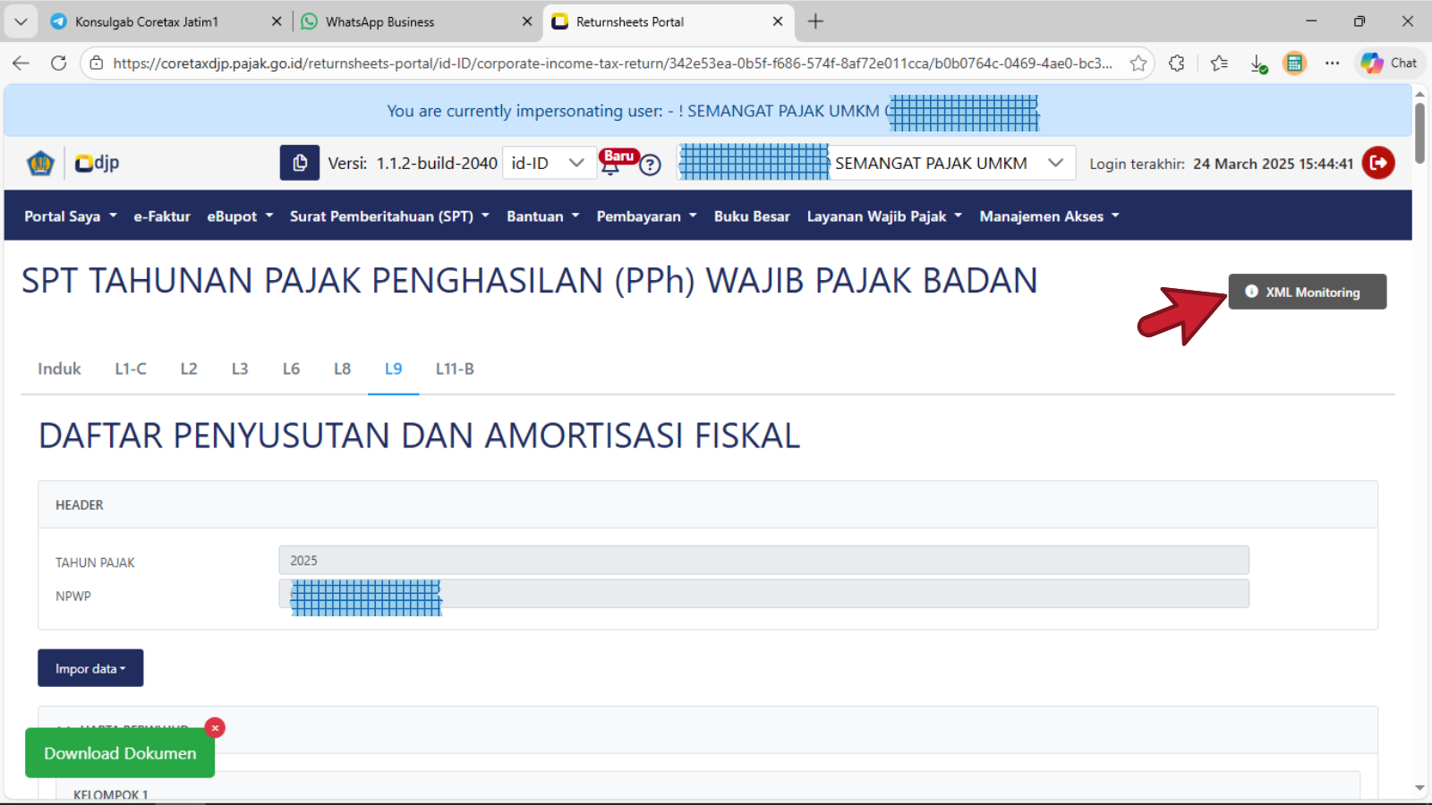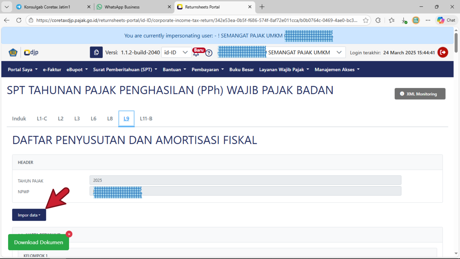 - Setelah klik tombol Posting SPT pada halaman induk konsep spt, kembali pada L9 untuk melihat JUMLAH PENYUSUTAN FISKAL apakah sudah sesuai nilai nominal yang tampil dengan kertas kerja.
