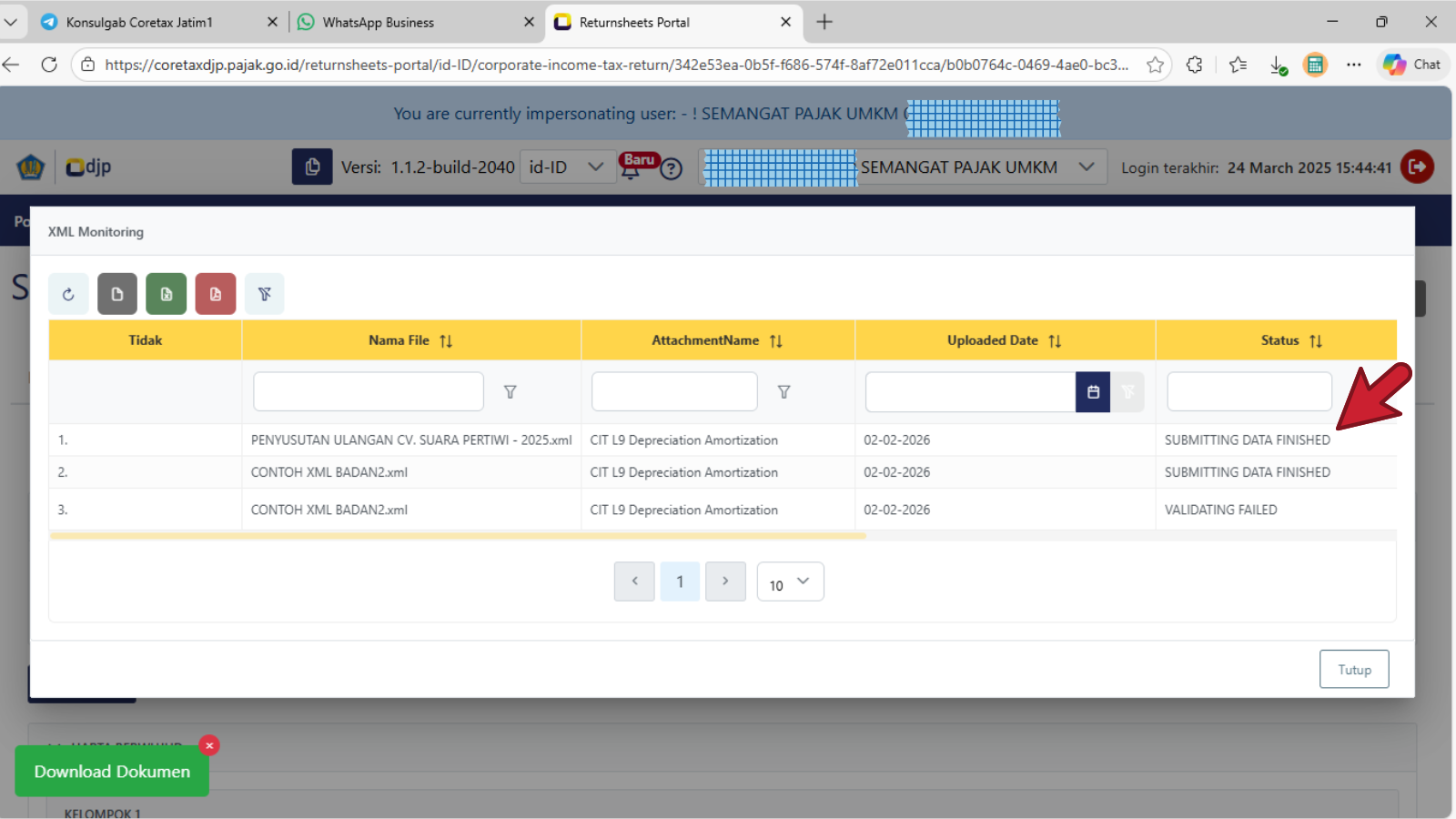 - Pada tabel XML Monitoring | Kolom Status adalah SUBMITTING DATA FINISHED ;