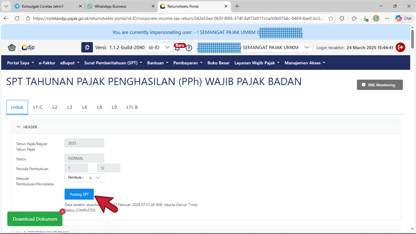 SPT TAHUNAN BADAN 2025 DI CORE TAX