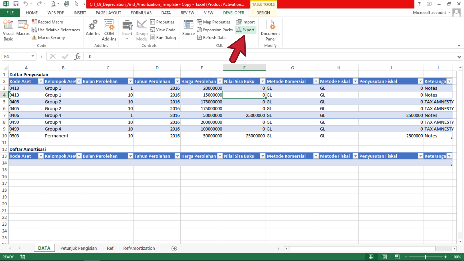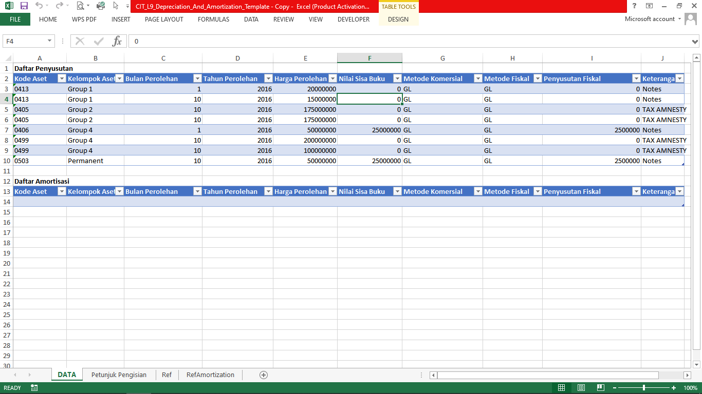 - Isi dan lengkapi data Daftar Penyusutan seperti contoh pada tangkapan layar ;
