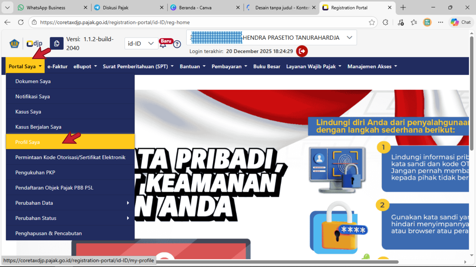 - Pilih Ikhtisar Profil Wajib Pajak ;