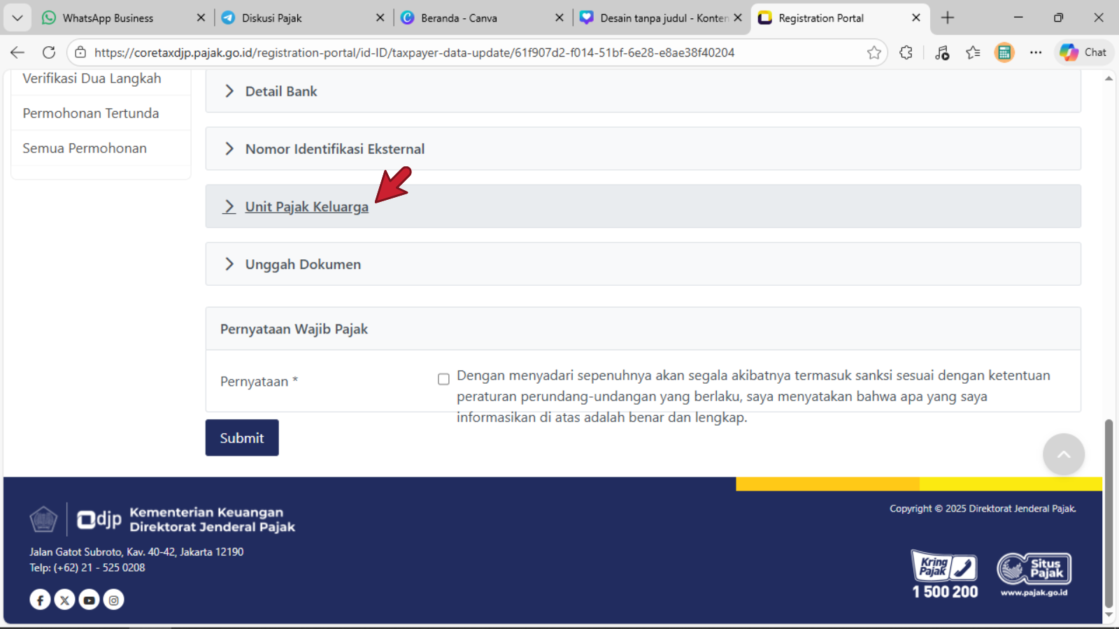 - Cek secara berkala pada portal core tax system suami/kepala keluarga pada sub menu Portal Saya - Unit Pajak Keluarga.
