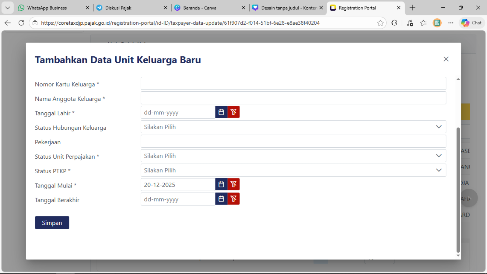 - Setelah lengkap pengisian pada baris data tersebut, klik atau pilih tombol Simpan.