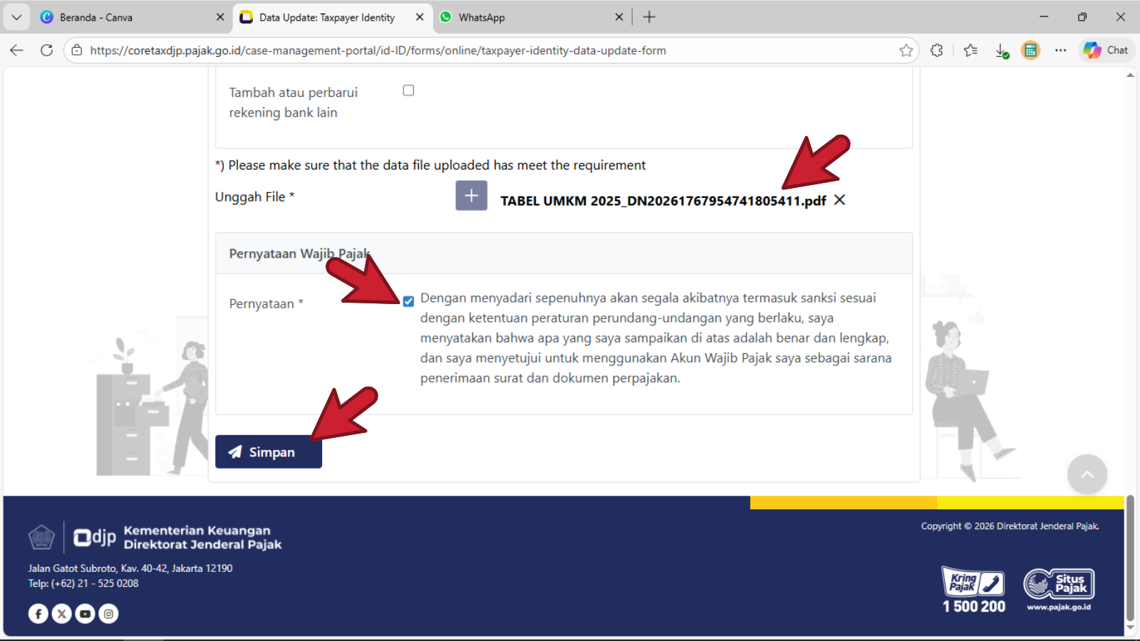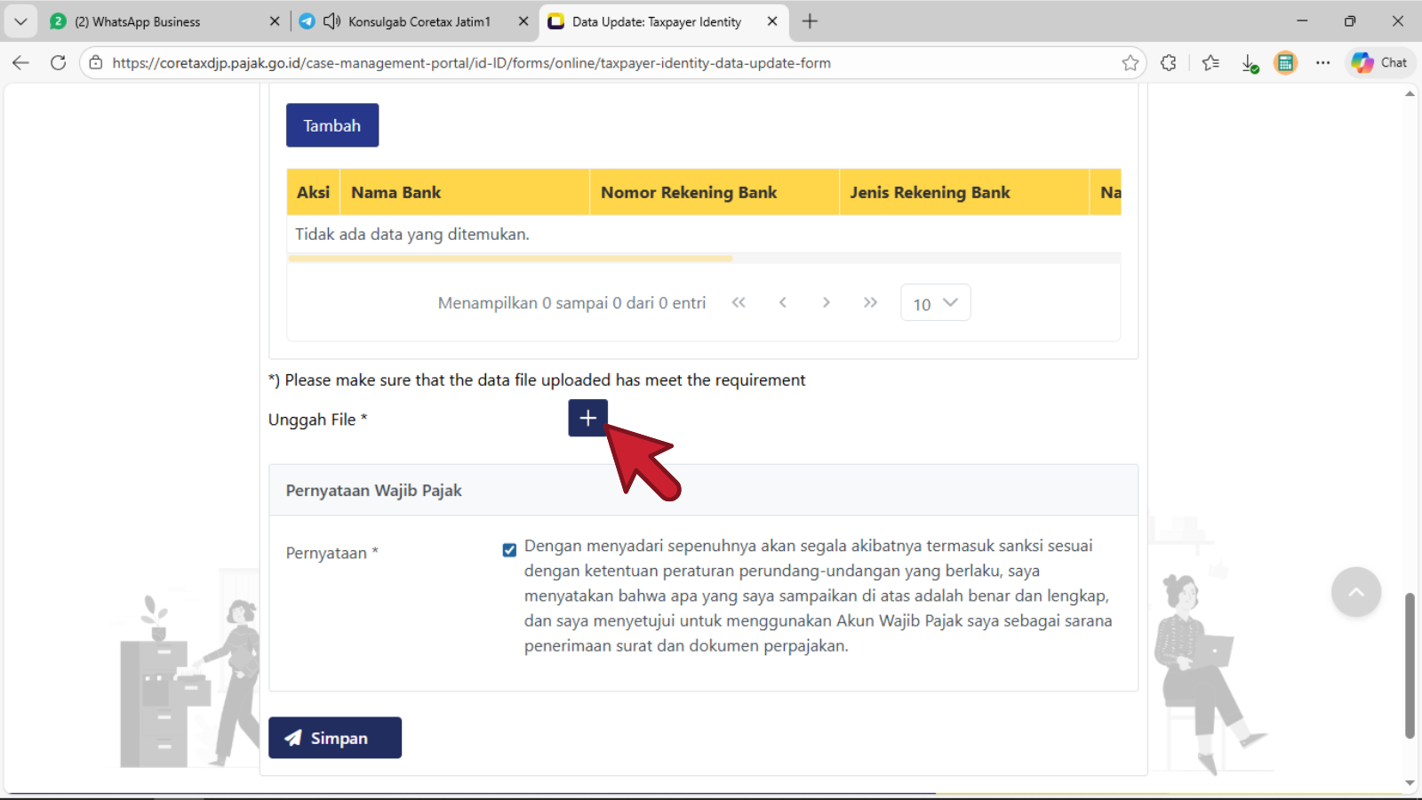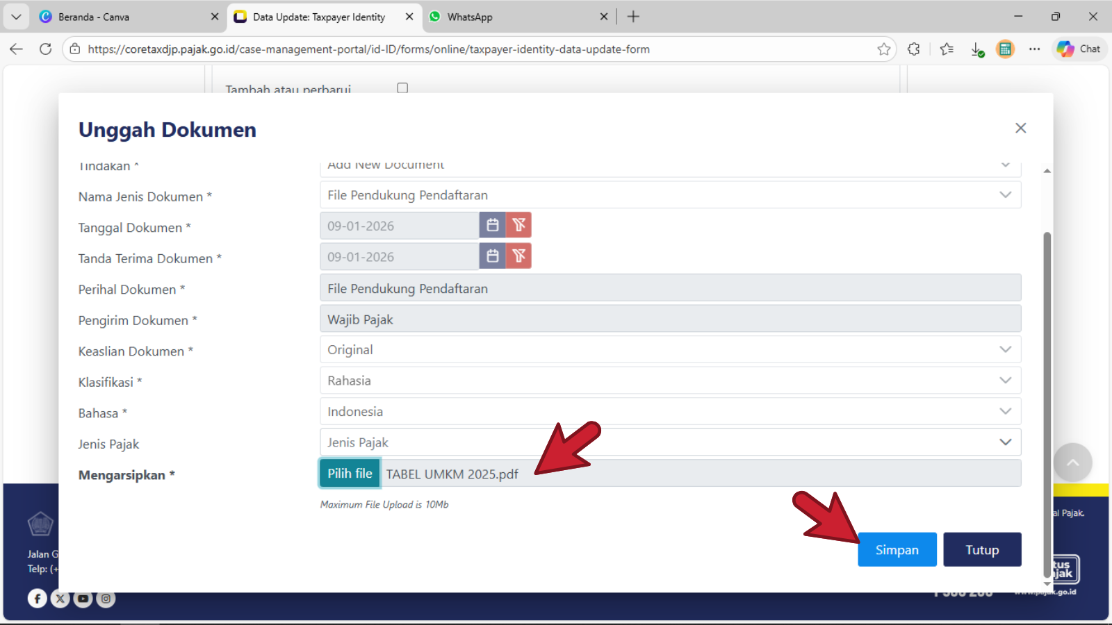 - Setelah menyisipkan file, maka tombol Simpan aktif dan dapat di pilih;
