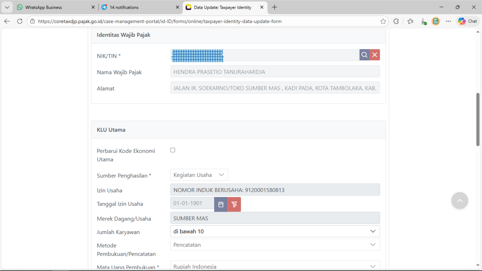 - Pastikan di baris Jumlah Karyawan sesuai dengan kondisi usaha;