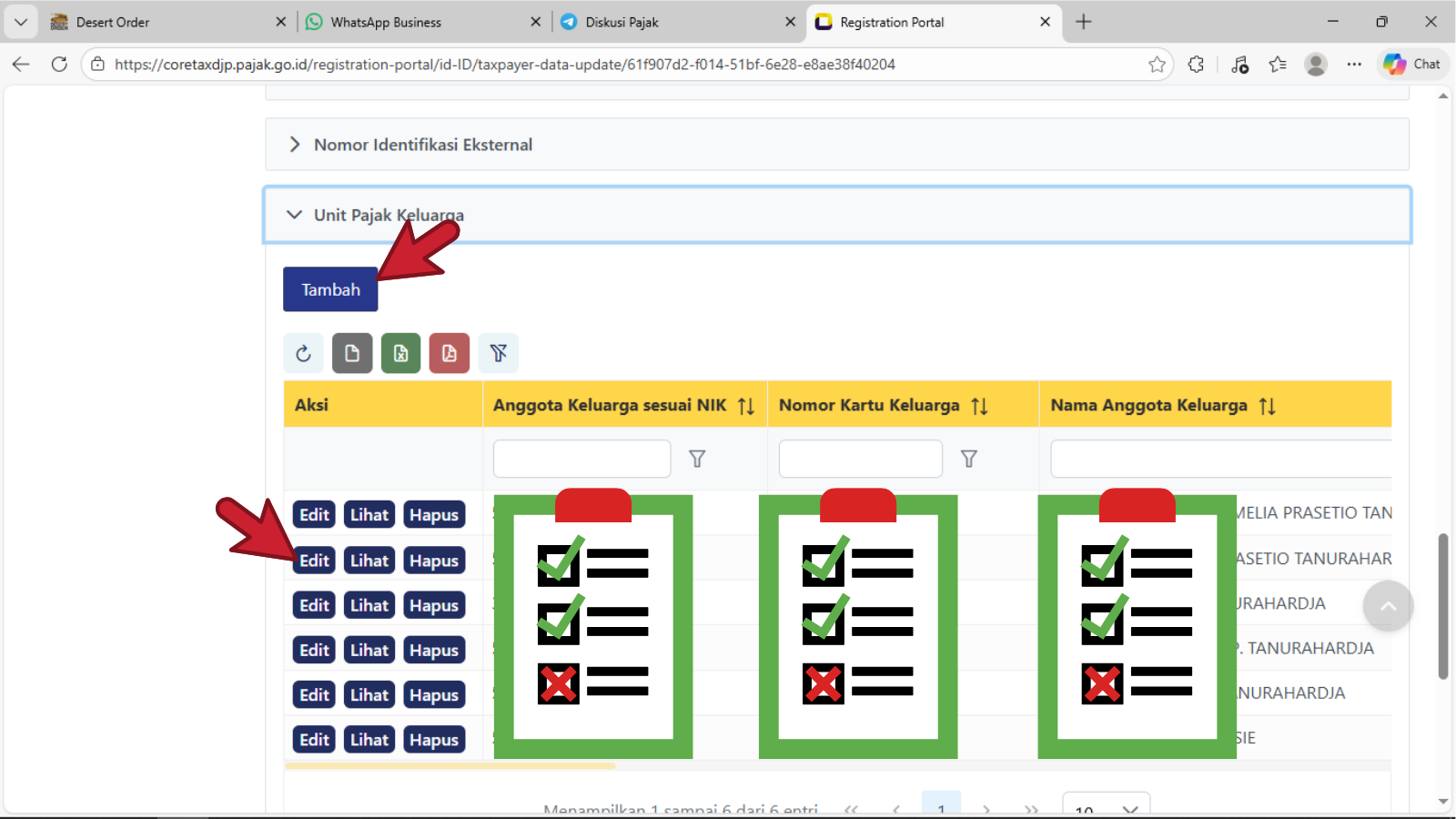- Pada tangkapan layar di atas adalah bagan Unit Pajak Keluarga, Anda dapat mengedit dengan klik tombol edit atau klik tombol Tambah untuk menambahkan anggota keluarga ;