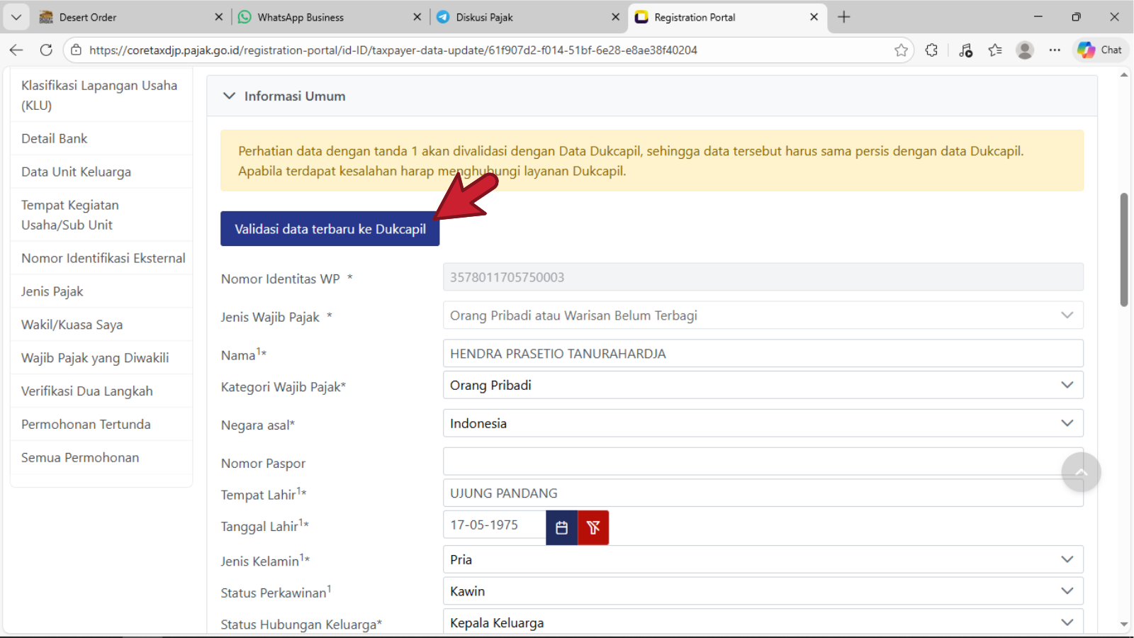 - Pada laman Informasi Umum, tidak perlu lebih dahulu klik tombol Validasi data terbaru ke Dukcapil ;