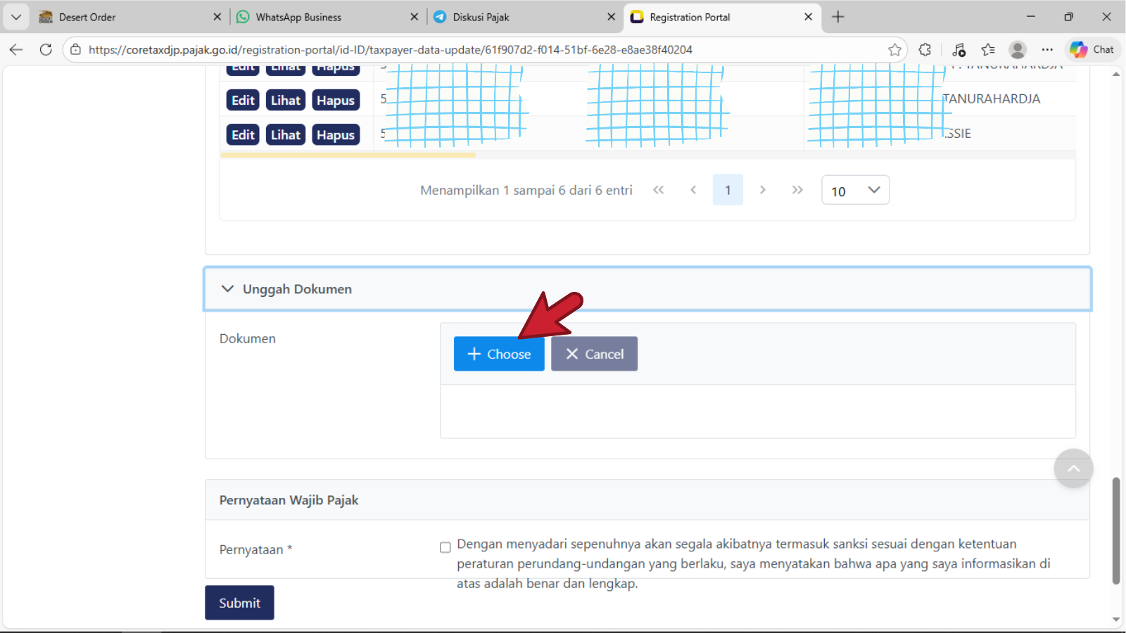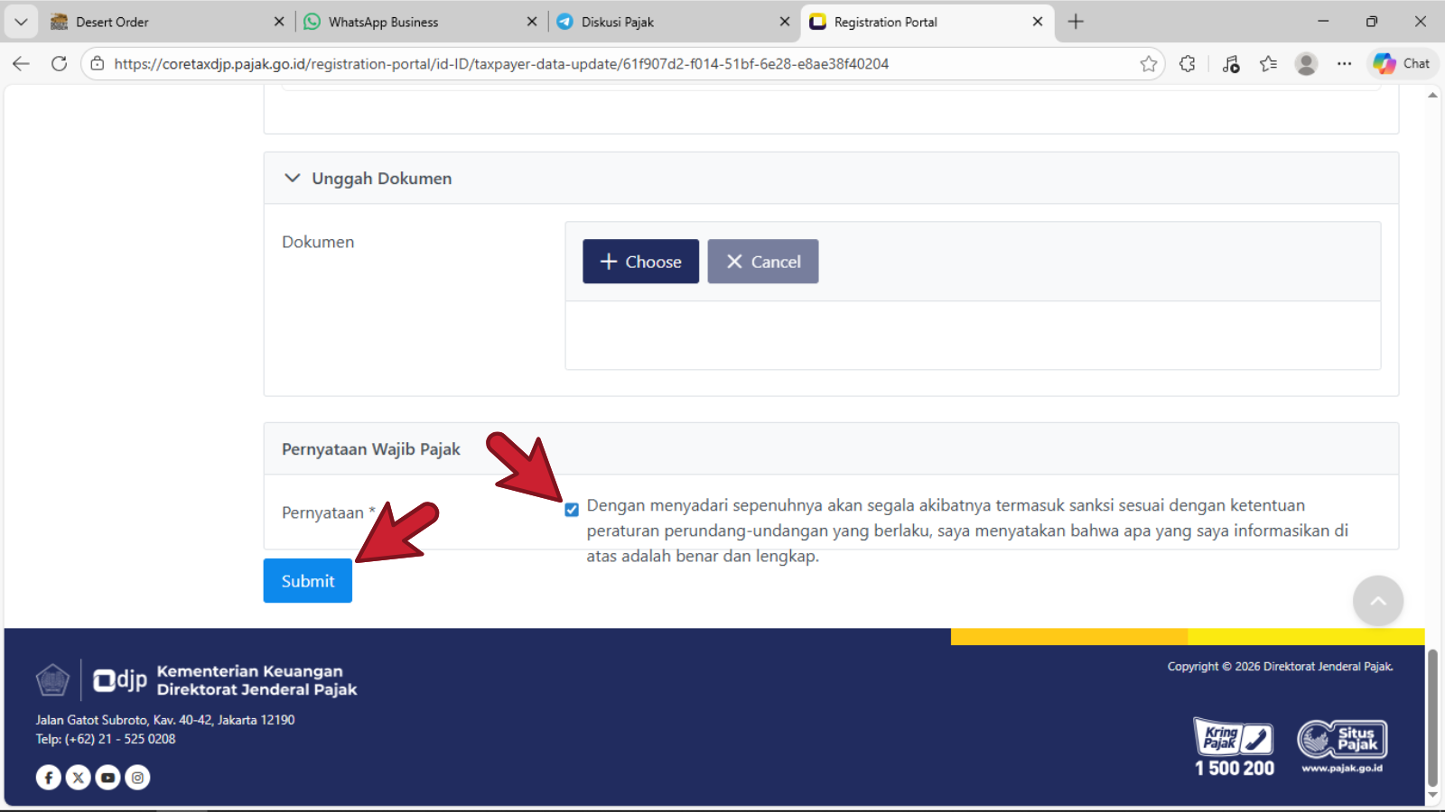 - Langkah terakhir adalah memberikan tanda centangan pada box Pernyataan dan klik tombol Submit.