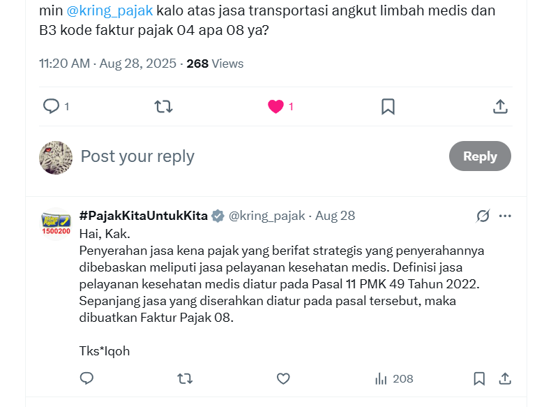 Atas jasa transportasi angkut limbah medis dan B3, kode Faktur Pajaknya menggunakan 04 atau 08?