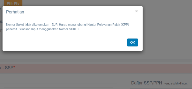 Pengguna mengalami kendala nomor Surat Keterangan (Suket) pengalihan hak atas tanah dan/atau bangunan (PHTB) tidak ditemukan di sistem ATR/BPN, meskipun status di Coretax sudah "closed."