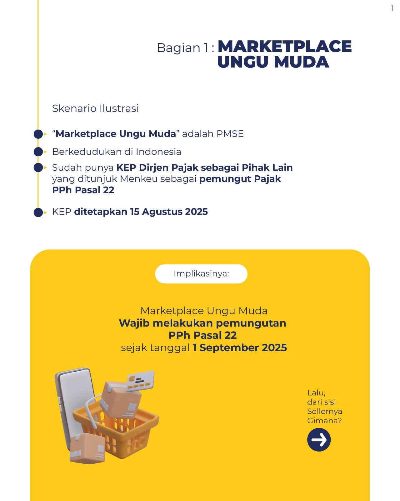 Mulai 1 September 2025, pajak penghasilan dipungut otomatis saat transaksi terjadi di marketplace. Jadi, wajib pajak nggak perlu repot hitung dan setor sendiri.