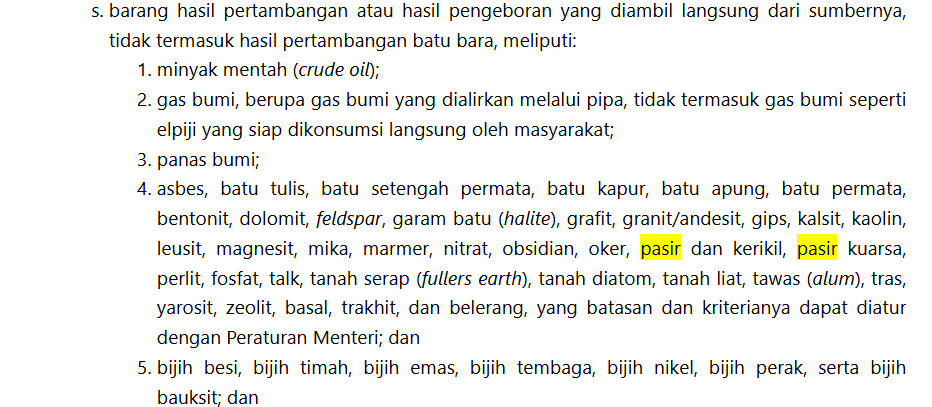 terdapat jenis pasir dalam PP 49 tahun 2022 yang termasuk dalam BKP tertentu yang bersifat strategis yang penyerahannya dibebaskan dari pengenaan PPN.