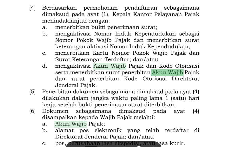 - Surat penerbitan Akun Wajib Pajak itu sendiri.