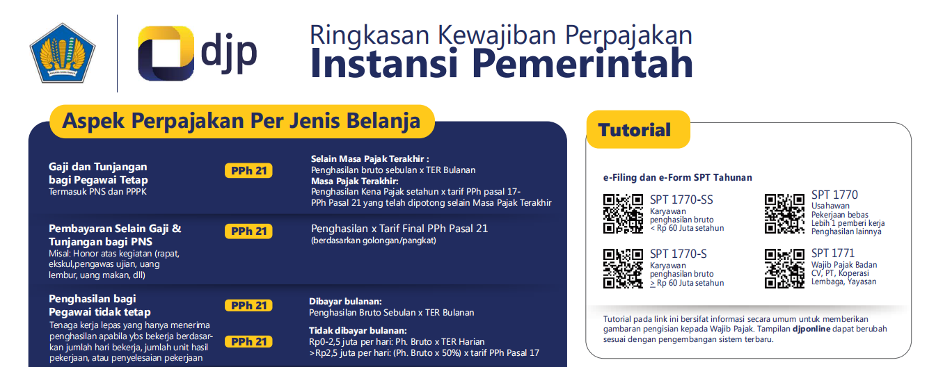 Oleh Less Summer di Infografis — 25 Jul 2025 Ringkasan Kewajiban Perpajakan Instansi Pemerintah File yang dapat didownloadRingkasan Kewajiban Perpajakan Instansi Pemerintah 2025 V2Ringkasan Kewajiban Perpajakan Instansi Pemerintah 2025 V2.pdf1 MBdownload-circle💡Instansi Pemerintah tetap memungut PPN meskipun bertransaksi dengan Non-PKPPenegasan Dirjen Perbendaharaan