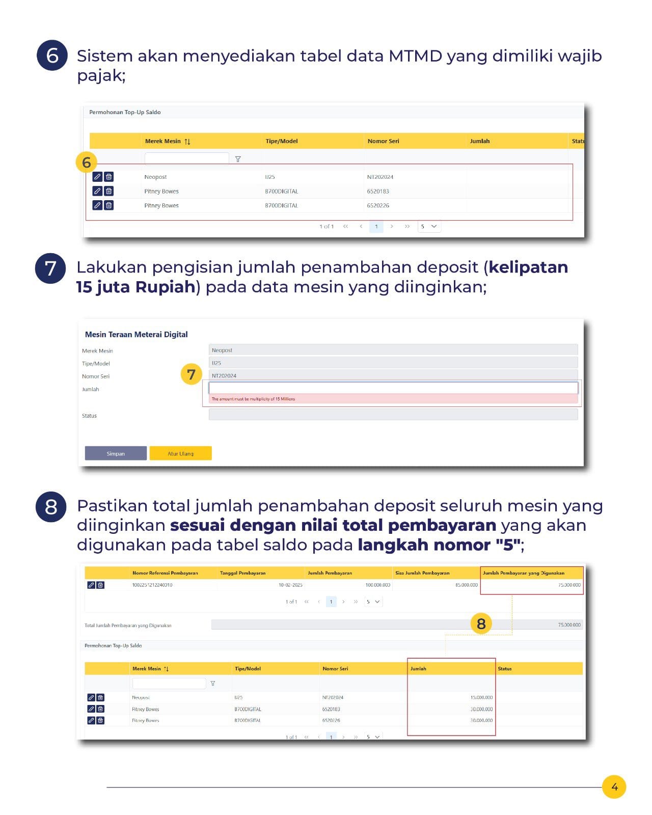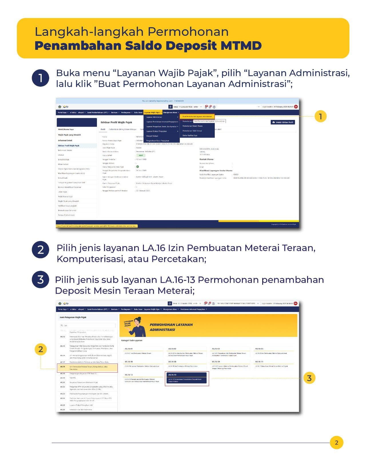 Untuk melalukan topup deposit mesin teraan meterai digital pada menu Layanan Wajib Pajak, pilih Layanan Administrasi pada http://coretaxdjp.pajak.go.id dan ikuti langkah selanjutnya sebagai berikut pada gambar: