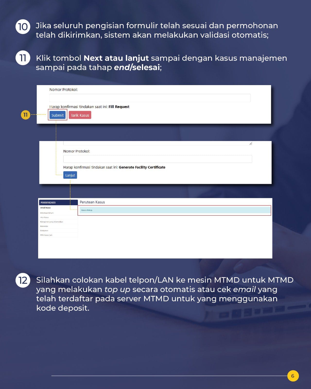 Jika pengisian formulir telah sesuai dan permohonan telah dikirimkan, sistem akan melalukan validasi otomatis. Klik tombol next atau lanjut dampai kasus manajemen sampai pada tahap end/selesai.