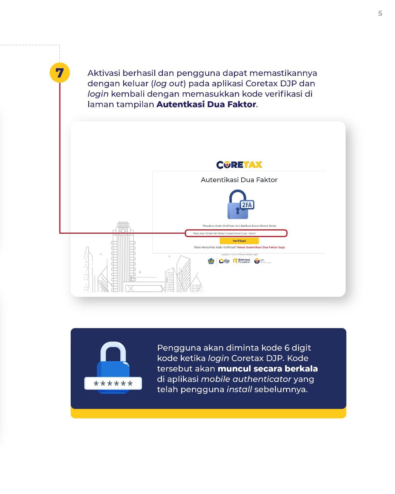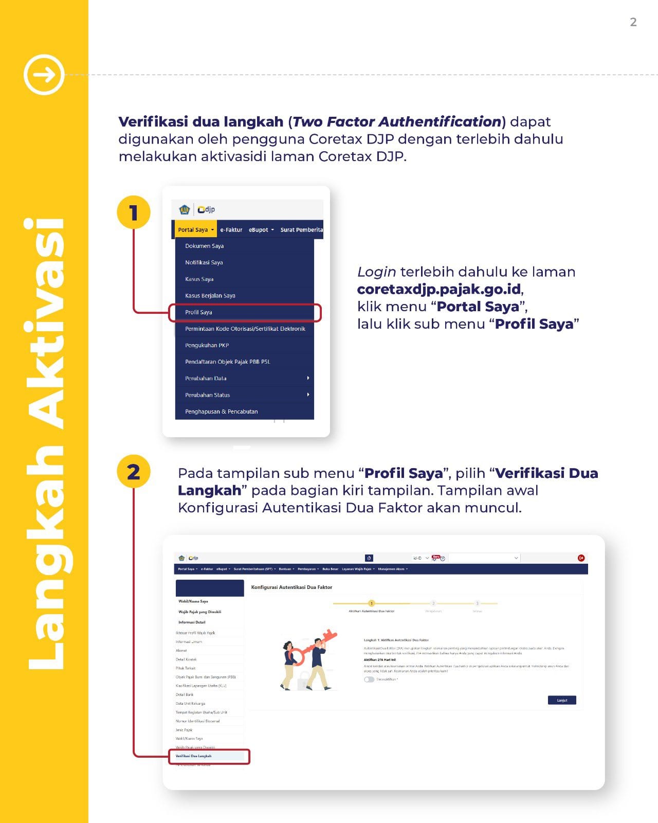 Aktifkan verifikasi dua langkah (Two-Factor Authentication/2FA) saat login di http://coretaxdjp.pajak.go.id