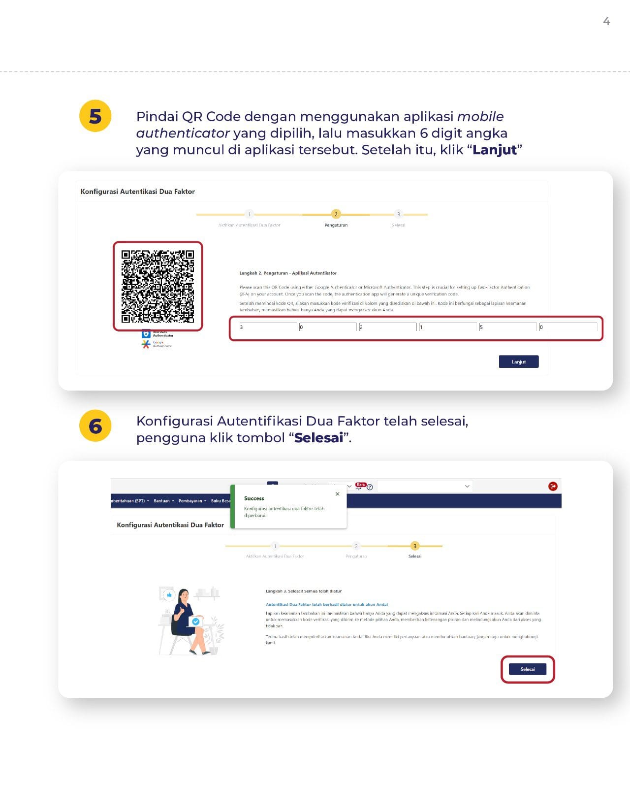 4. Jika menggunakan Authenticator App, install aplikasi mobile authenticator dan pindai QR Code di layar.